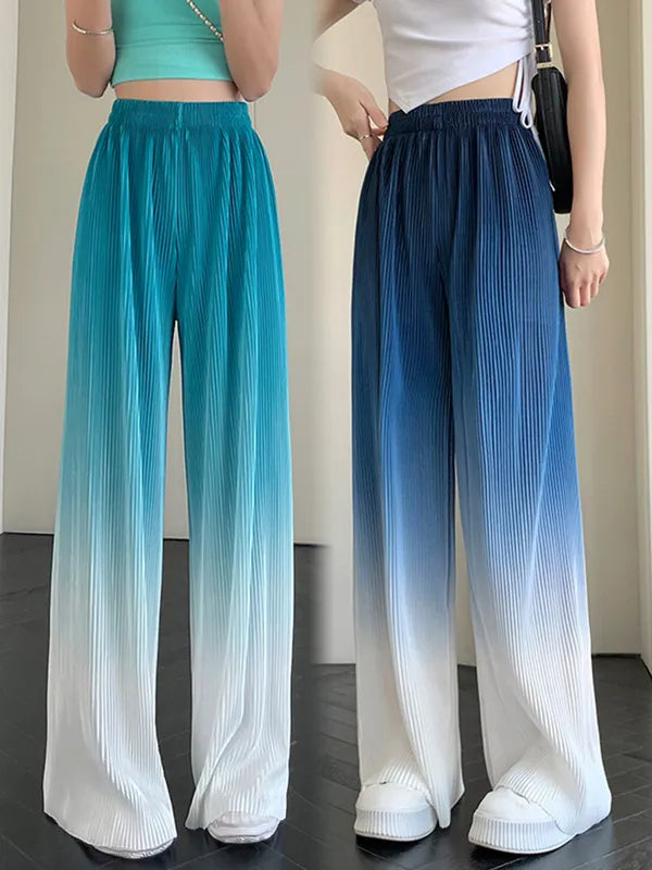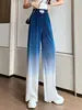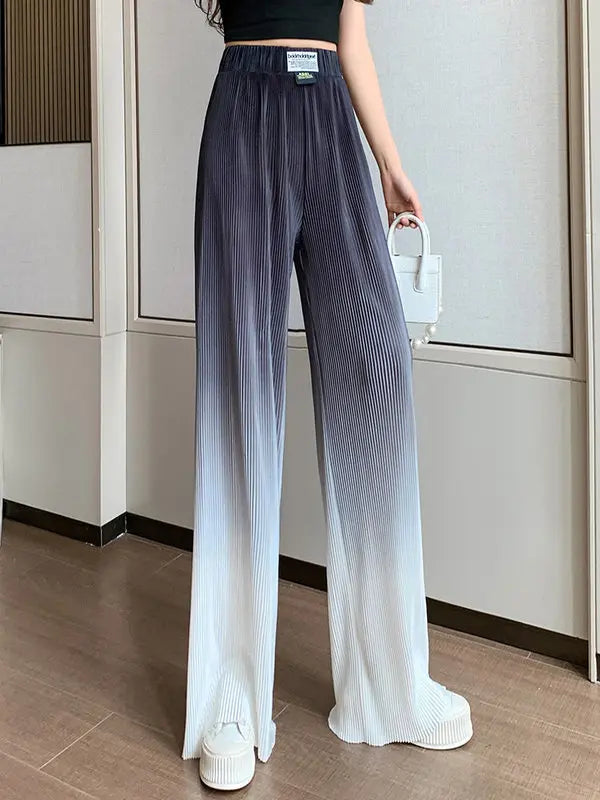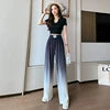 بنطلون نسائي واسع الساق ذو خصر مرتفع